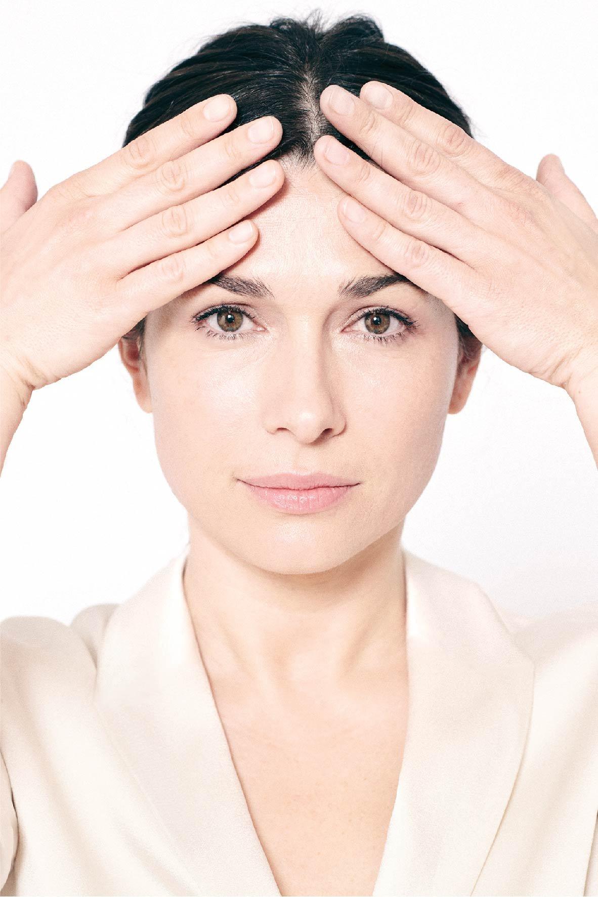 轻轻按摩干燥的额头,从中间到两边。